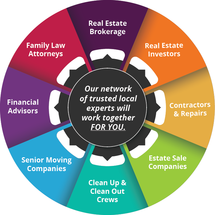 The”Service Hub” wheel below shows just some of the many solution providers I can connect you with to make the probate process as smooth as possible.